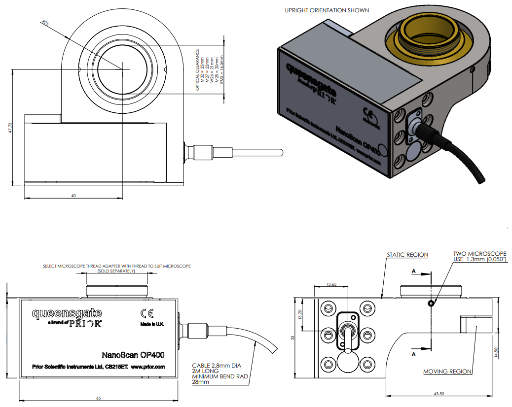 NanoScan OP400 壓電物鏡掃描 Z 軸提供快捷的步進時間以及整定時間,基于電容傳感器的位置反饋,也可以提供優(yōu)異的精度以及分辨率。OP400 與大多數(shù)顯微鏡以及物鏡兼容,特別的用戶配置設(shè)置針,對物鏡大小,重量,性能需求做出優(yōu)化,只需要針對應(yīng)用選擇合適的設(shè)置即可使用。